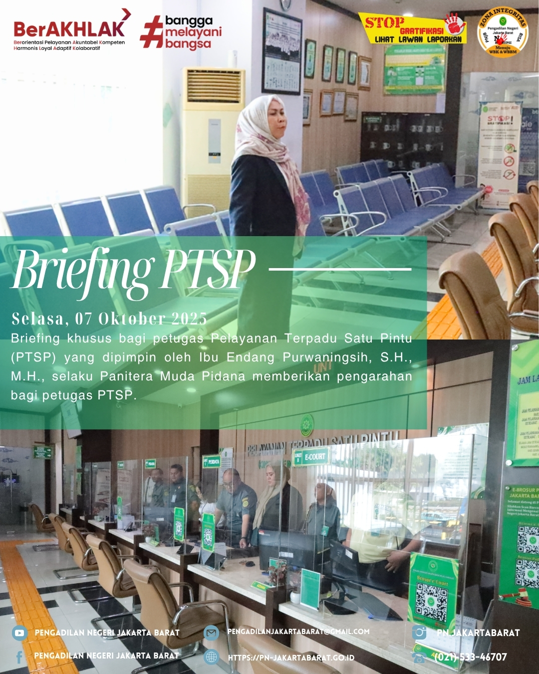 07 Oktober 2025 - Briefing PTSP Pengadilan Negeri Jakarta Barat