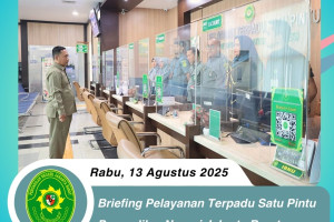 Jakarta, 13 Agustus 2025 Bertempat di lobi PTSP Pengadilan Negeri Jakarta Barat Kelas IA Khusus, telah diadakan briefing khusus bagi petugas Pelayanan Terpadu Satu Pintu (PTSP) yang dipimpin oleh Panitera Muda Perdata, Bapak Evi Setia Permana, S.H., M.H. Briefing tersebut bertujuan untuk meningkatkan kualitas pelayanan kepada masyarakat yang membutuhkan layanan di…
