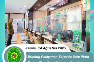 Jakarta, 12 Agustus 2025 Bertempat di lobi PTSP Pengadilan Negeri Jakarta Barat, telah diadakan briefing khusus bagi petugas Pelayanan Terpadu Satu Pintu (PTSP) yang dipimpin oleh Bapak Agus Ardiansyah S.Sos., M.H., selaku Kepala Bagian Umum Dalam briefing ini, Bapak Agus Ardiansyah S.Sos., M.H., berkesempatan untuk memberikan arahan dan panduan kepada petugas…