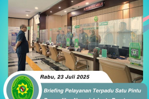 Jakarta, 23 Juli 2025 Bertempat di lobi PTSP Pengadilan Negeri Jakarta Barat Kelas IA Khusus, telah diadakan briefing khusus bagi petugas Pelayanan Terpadu Satu Pintu (PTSP) yang dipimpin oleh Bapak Komarudin, S.E., M.Si., selaku Kepala Sub Bagian Tata Usaha dan Keuangan. Dalam briefing ini, Bapak Komarudin, S.E., M.Si., berkesempatan untuk memberikan…