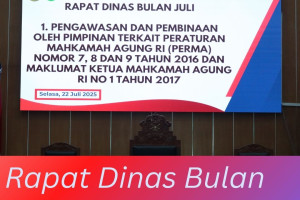 Jakarta, 22 Juli 2025 Rapat Dinas Bulan Juli 2025 dipimpin oleh Ketua Pengadilan Negeri Jakarta Barat Kelas IA Khusus, Bapak Moehammad Pandji Santoso, S.H., M.H., yang dihadiri oleh para Hakim, para Pejabat Struktural, para Pejabat Fungsional, para Panitera Pengganti, para Jurusita, para Jurusita Pengganti, Pelaksana dan juga Honorer pada Pengadilan Negeri Jakarta Barat Kelas IA Khusus. Rapat Dinas…