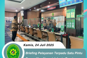 Jakarta, 24 Juli 2025 Bertempat di lobi PTSP Pengadilan Negeri Jakarta Barat, telah diadakan briefing khusus bagi petugas Pelayanan Terpadu Satu Pintu (PTSP) yang dipimpin oleh Bapak Agus Ardiansyah S.Sos., M.H., selaku Kepala Bagian Umum Dalam briefing ini, Bapak Agus Ardiansyah S.Sos., M.H., berkesempatan untuk memberikan arahan dan panduan kepada petugas…