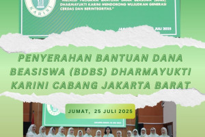 Jakarta, 25 Juli 2025 Dharmayukti Karini Cabang Jakarta Barat menggelar Pertemuan Penyerahan Bantuan Dana Beasiswa (BDBS) yang dipimpin oleh Ibu Siti Handayani Santoso, selaku Ketua Dharmayukti Karini Cabang Jakarta Barat. Program Bantuan Dana Beasiswa (BDBS) merupakan kegiatan yang dilaksanakan secara rutin setiap tahun oleh Dharmayukti Karini. Pada tahun 2025 ini, kegiatan…