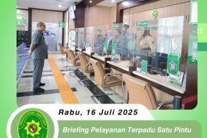 Jakarta, 16 Juli 2025 Bertempat di lobi PTSP Pengadilan Negeri Jakarta Barat Kelas IA Khusus, telah diadakan briefing khusus bagi petugas Pelayanan Terpadu Satu Pintu (PTSP) yang dipimpin oleh Bapak Komarudin, S.E., M.Si., selaku Kepala Sub Bagian Tata Usaha Keuangan dan Umum. Dalam briefing ini, Bapak Komarudin, S.E., M.Si., berkesempatan…
