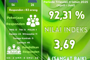 Indeks Kepuasan Masyarakat Pengadilan Negeri Jakarta Barat Kelas IA Khusus, periode Triwulan Ke-II, April s/d Juni 2025, sebesar 92,31%, dengan Nilai Indeks 3,69 (Sangat Baik), diperoleh dari total responden sebanyak 82 Orang. #mahkamahagungri #badilummari #ptdkijakarta #pnjbbisa #berakhlak #banggamelayanibangsa