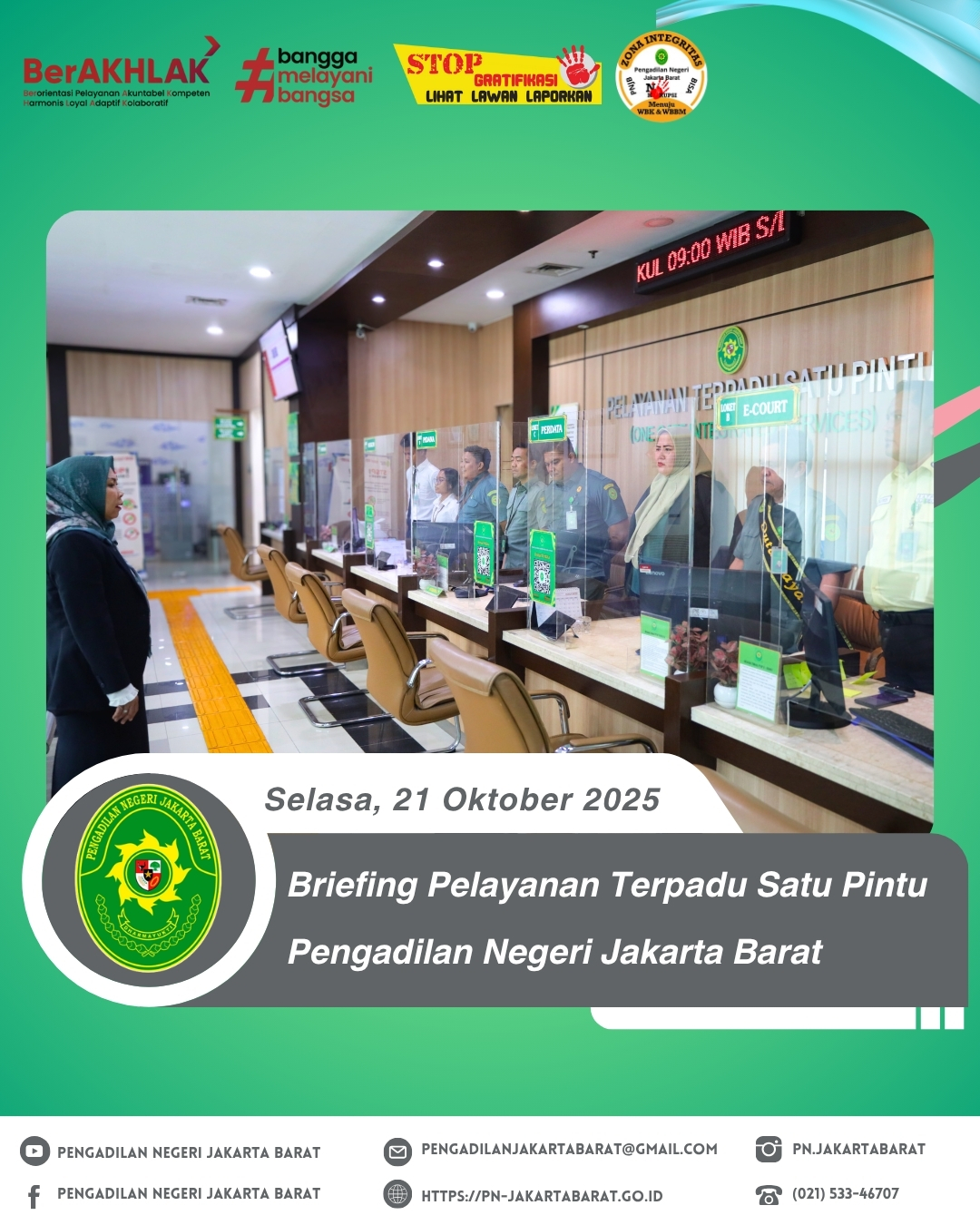 Briefing tersebut bertujuan untuk meningkatkan kualitas pelayanan kepada masyarakat yang membutuhkan layanan di PN Jakarta Barat. Dalam kesempatan ini, para petugas PTSP diberikan arahan dan penekanan terhadap pentingnya pelayanan yang efisien, transparan, dan akuntabel.