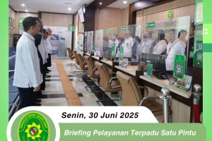 *PNJB, 30 Juni 2025* Briefing Pelayanan Terpadu Satu Pintu (PTSP) yang berlangsung di lobi PTSP Pengadilan Negeri Jakarta Barat dipimpin oleh Panitera Pengadilan Negeri Jakarta Barat, Bapak Eko Suharjono, S.H., M.H., selaku Pengelola PTSP bersama dengan Hakim Pengawas PTSP, Sekretaris, Kabag Umum dan Penanggung jawab harian PTSP (Panitera Muda dan Kepala Sub…