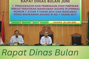 *PNJB, 30 Juni 2025* - Rapat Dinas Bulan Juni 2025 dipimpin oleh Ketua Pengadilan Negeri Jakarta Barat Kelas IA Khusus, Bapak Moehammad Pandji Santoso, S.H., M.H., bersama Wakil Ketua, Bapak Iwan Anggoro Warsita, S.H., M.Hum., yang dihadiri oleh para Hakim, para Pejabat Struktural, para Pejabat Fungsional, para Panitera Pengganti, para Jurusita, para Jurusita Pengganti, Pelaksana dan…