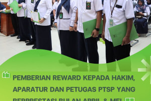 *PNJB, 30 Juni 2025* Ketua dan Wakil Ketua Pengadilan Negeri Jakarta Barat memberikan reward kepada Hakim, Panitera Pengganti, Jurusita, Staf dan Petugas PTSP yang dinilai kinerjanya baik selama bertugas. Berikut nama-nama yang menerima reward Bulan April: 1. Hakim: Bapak Aslan Ainin, S.H., M.H. 2. Panitera Pengganti: Ibu Wiguna Dewi Irmawati, S.H., M.M.…