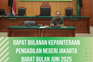 *PNJB,11 Juni 2025* Hari ini telah berlangsung Rapat Kepaniteraan bulan Juni 2025 yang dipimpin oleh Panitera Pengadilan Negeri Jakarta Barat, Bapak Iyus Yusuf, S.H., M.H. Rapat ini diadakan dengan tujuan mengoptimalkan kinerja Panitera Pengganti dalam membantu Hakim / Majelis Hakim dengan menghadiri dan mencatat jalannya sidang serta membuat berita acara tentang semua…