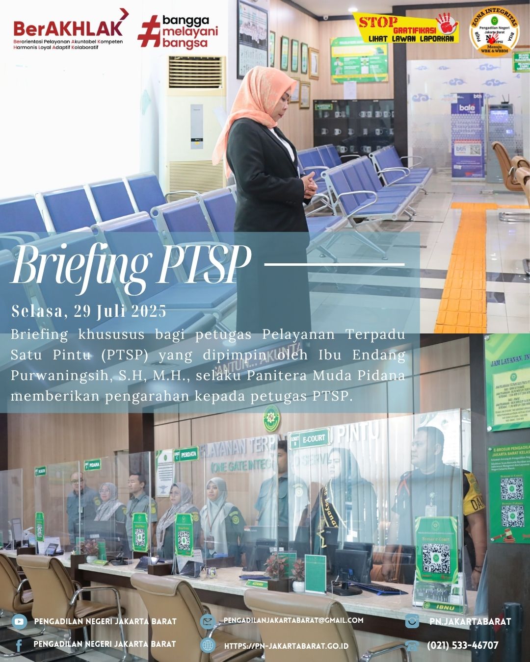 29 Juli 2025 - Briefing PTSP Pengadilan Negeri Jakarta Barat