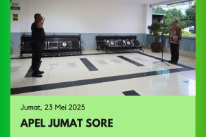 *PNJB, 23 Mei 2025* Dalam rangka mengakhiri kegiatan mingguan di Pengadilan Negeri Jakarta Barat Kelas IA Khusus, dilaksanakan Apel Jumat Sore yang dihadiri oleh seluruh Aparatur Peradilan. Apel ini dipimpin oleh Bapak Iyus Yusuf, S.H., M.H., sebagai Pembina Apel, dan Bapak Samijo, sebagai Komandan Apel serta Ibu Monica Selly Agatha Putri, S.H., sebagai MC, serta Bapak…