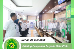 *PNJB, 26 Mei 2025* Briefing Pelayanan Terpadu Satu Pintu (PTSP) yang berlangsung di lobi PTSP Pengadilan Negeri Jakarta Barat dipimpin oleh Ketua Pengadilan Negeri Jakarta Barat, Bapak Moehammad Pandji Santoso, S.H., M.H., bersama Bapak Demi Hadiantoro, S.H., M.H., dan Ibu Febri Purnamavita, S.H., M.H., selaku Hakim Pengawas PTSP, Panitera dan Sekretaris selaku…