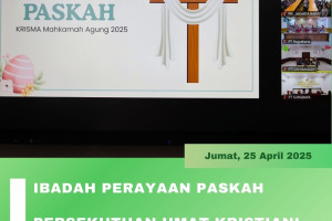 *PNJB, 25 April 2025* - Umat Kristen Warga Pengadilan Negeri Jakarta Barat Kelas IA Khusus mengikuti Ibadah Perayaan Paskah Persekutuan Umat Kristiani Mahkamah Agung RI (KRISMA) yang diselenggarakan oleh Mahkamah Agung RI secara daring via Zoom. Ibadah Perayaan Paskah tahun ini mengambil tema “Damai Sejahtera Kristus di Tengah Keluarga” yang…