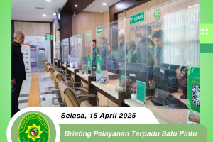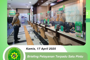 *PNJB, 17 April 2025* - Bertempat di lobi PTSP Pengadilan Negeri Jakarta Barat, telah dilaksanakan briefing khusus bagi petugas Pelayanan Terpadu Satu Pintu (PTSP) yang dipimpin oleh Bapak Komarudin, S.E., M.Si., selaku Kepala Sub Bagian Tata Usaha Keuangan dan Umum. Dalam briefing ini, Bapak Komarudin, S.E., M.Si., berkesempatan untuk memberikan arahan…