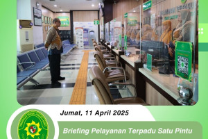 *PNJB, 11 April 2025* - Bertempat di lobi PTSP Pengadilan Negeri Jakarta Barat, telah diadakan briefing khusus bagi petugas Pelayanan Terpadu Satu Pintu (PTSP) yang dipimpin oleh Bapak Komarudin, S.E., M.Si., selaku Kepala Sub Bagian Tata Usaha Keuangan dan Umum. Dalam briefing ini, Bapak Komarudin, S.E., M.Si., berkesempatan untuk memberikan…
