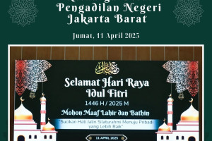 *PNJB, 11 April 2025* Pengadilan Negeri Jakarta Barat melaksanakan acara Halal Bi Halal dengan seluruh Pejabat Struktural dan juga Pegawai yang bertempat di Ruang Sidang Utama Kusumah Atmadja. Bapak Iwan Wardhana, S.H., M.H. selaku Ketua Panitia Acara ini berterima kasih kepada anggota yang membantu keberlangsungan acara ini. Diharapkan dengan dilaksanakannya acara…