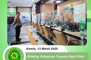 *PNJB, 13 Maret 2025* - Bertempat di lobi PTSP Pengadilan Negeri Jakarta Barat, telah diadakan briefing khusus bagi petugas Pelayanan Terpadu Satu Pintu (PTSP) yang dipimpin oleh Bapak Komarudin, S.E., M.Si., selaku Kepala Sub Bagian Tata Usaha Keuangan dan Umum. Dalam briefing ini, Bapak Komarudin, S.E., M.Si., berkesempatan untuk memberikan…