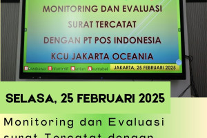 *PNJB, 25 Februari 2025* - Wakil Ketua Pengadilan Negeri Jakarta Barat, Bapak Achmad Satibi, S.H., M.H., memimpin monitoring dan evaluasi surat tercatat bersama dengan Panitera, Panitera Muda Pidana, Jurusita, Jurusita Pengganti dan perwakilan dari PT Pos Indonesia KCU Jakarta Oceania. Dalam monitoring dan evaluasi surat tercatat membahas tentang informasi mengenai keadaan sebenarnya di…