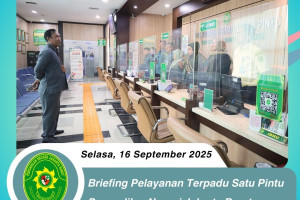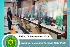 Selasa, 16 September 2025 Bertempat di lobi PTSP Pengadilan Negeri Jakarta Barat Kelas IA Khusus, telah diadakan briefing khusus bagi petugas Pelayanan Terpadu Satu Pintu (PTSP) yang dipimpin oleh Bapak Agus Ardiansyah S.Sos., M.H., selaku Kepala Bagian Umum Dalam briefing ini, Bapak Agus Ardiansyah S.Sos., M.H., berkesempatan untuk memberikan arahan dan…