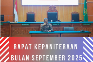 Kamis, 18 September 2025 Hari ini telah berlangsung Rapat Kepaniteraan Bulan September 2025 yang dipimpin oleh Panitera Pengadilan Negeri Jakarta Barat, Bapak Eko Suharjono, S.H., M.H. Rapat ini diadakan dengan tujuan mengoptimalkan kinerja Panitera Pengganti dalam membantu Hakim / Majelis Hakim dengan menghadiri dan mencatat jalannya sidang serta membuat berita acara tentang…