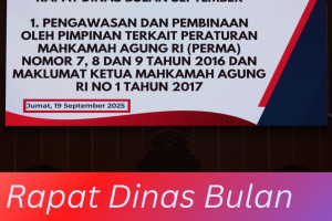 Jakarta, 19 September 2025 Rapat Dinas Bulan September 2025 dipimpin oleh Ketua Pengadilan Negeri Jakarta Barat Kelas IA Khusus, Bapak Moehammad Pandji Santoso, S.H., M.H., yang dihadiri oleh para Hakim, para Pejabat Struktural, para Pejabat Fungsional, para Panitera Pengganti, para Jurusita, para Jurusita Pengganti, Pelaksana dan juga Honorer pada Pengadilan Negeri Jakarta Barat Kelas IA Khusus. Rapat…