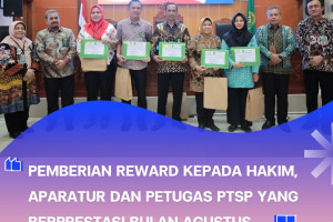 Jakarta, 19 September 2025 Ketua Pengadilan Negeri Jakarta Barat, Panitera dan Sekretaris memberikan reward kepada Hakim, Panitera Pengganti, Jurusita, Pelaksana dan Petugas PTSP yang kinerjanya baik selama bertugas. Berikut nama-nama yang menerima reward Bulan Agustus: 1. Hakim: Febri Purnamavita, S.H., M.H. 2. Panitera Pengganti: Ninik Sriwahyuni, S.H. 3. Jurusita Pengganti: Nurhadi, S.H 4. Pelaksana: Bram Prasetya…