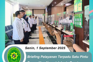 Jakarta, 2 September 2025 Bertempat di lobi PTSP Pengadilan Negeri Jakarta Barat, telah diadakan briefing khusus bagi petugas Pelayanan Terpadu Satu Pintu (PTSP) yang dipimpin oleh Bapak Agus Ardiansyah S.Sos., M.H., selaku Kepala Bagian Umum Dalam briefing ini, Bapak Agus Ardiansyah S.Sos., M.H., berkesempatan untuk memberikan arahan dan panduan kepada…