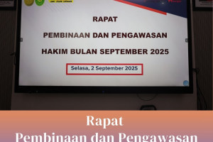 Selasa, 2 September 2025 Bertempat di Ruang Media Center, Wakil Ketua Pengadilan Negeri Jakarta Barat Kelas IA Khusus, Bapak Iwan Anggoro Warsita, S.H., M. Hum., memimpin Rapat Pembinaan dan Pengawasan Hakim bulan September 2025 yang dihadiri oleh para Hakim Pengadilan Negeri Jakarta Barat Kelas IA Khusus. Rapat membahas seputar tentang kode etik…