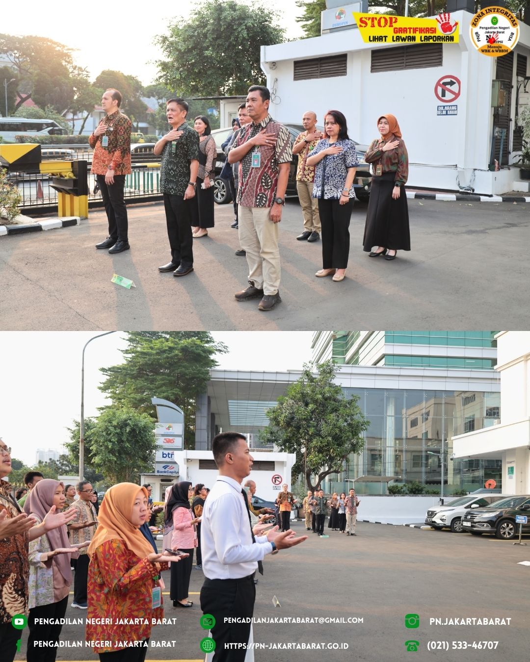 Apel Jumat Sore ini diharapkan menjadi akhir yang baik untuk mengakhiri pekan pelayanan di Pengadilan Negeri Jakarta Barat Kelas IA Khusus. Semangat dan komitmen seluruh pegawai dalam menjalankan tugasnya diharapkan dapat terus mengukuhkan citra lembaga pengadilan yang profesional dan berkualitas.