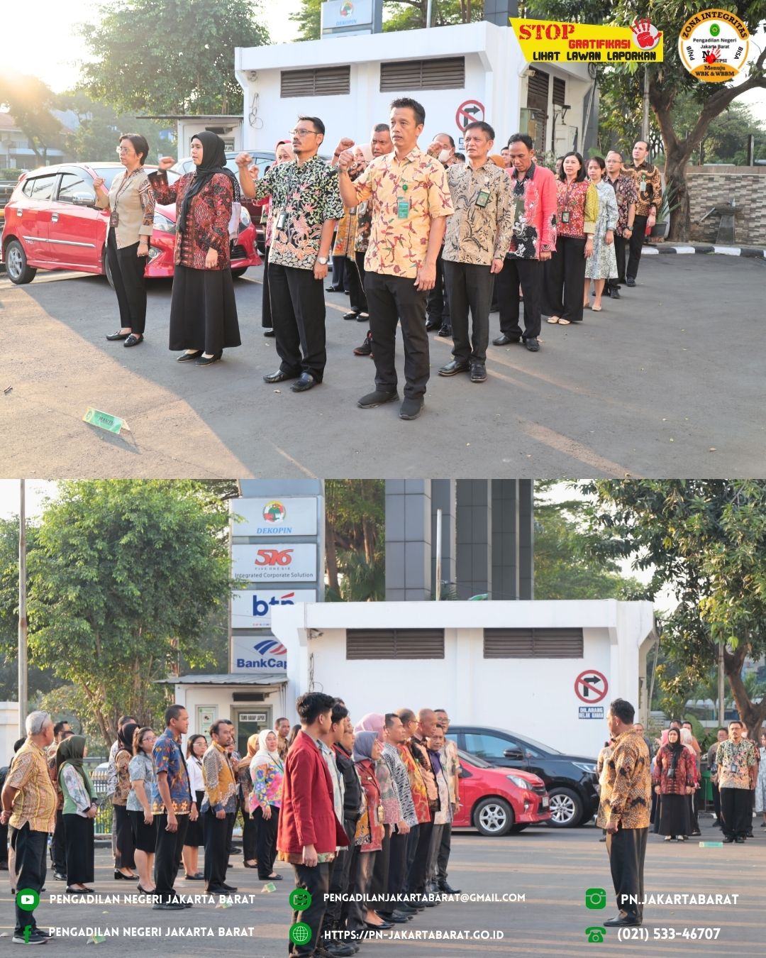 Apel Jumat Sore ini diharapkan menjadi akhir yang baik untuk mengakhiri pekan pelayanan di Pengadilan Negeri Jakarta Barat Kelas IA Khusus. Semangat dan komitmen seluruh pegawai dalam menjalankan tugasnya diharapkan dapat terus mengukuhkan citra lembaga pengadilan yang profesional dan berkualitas.