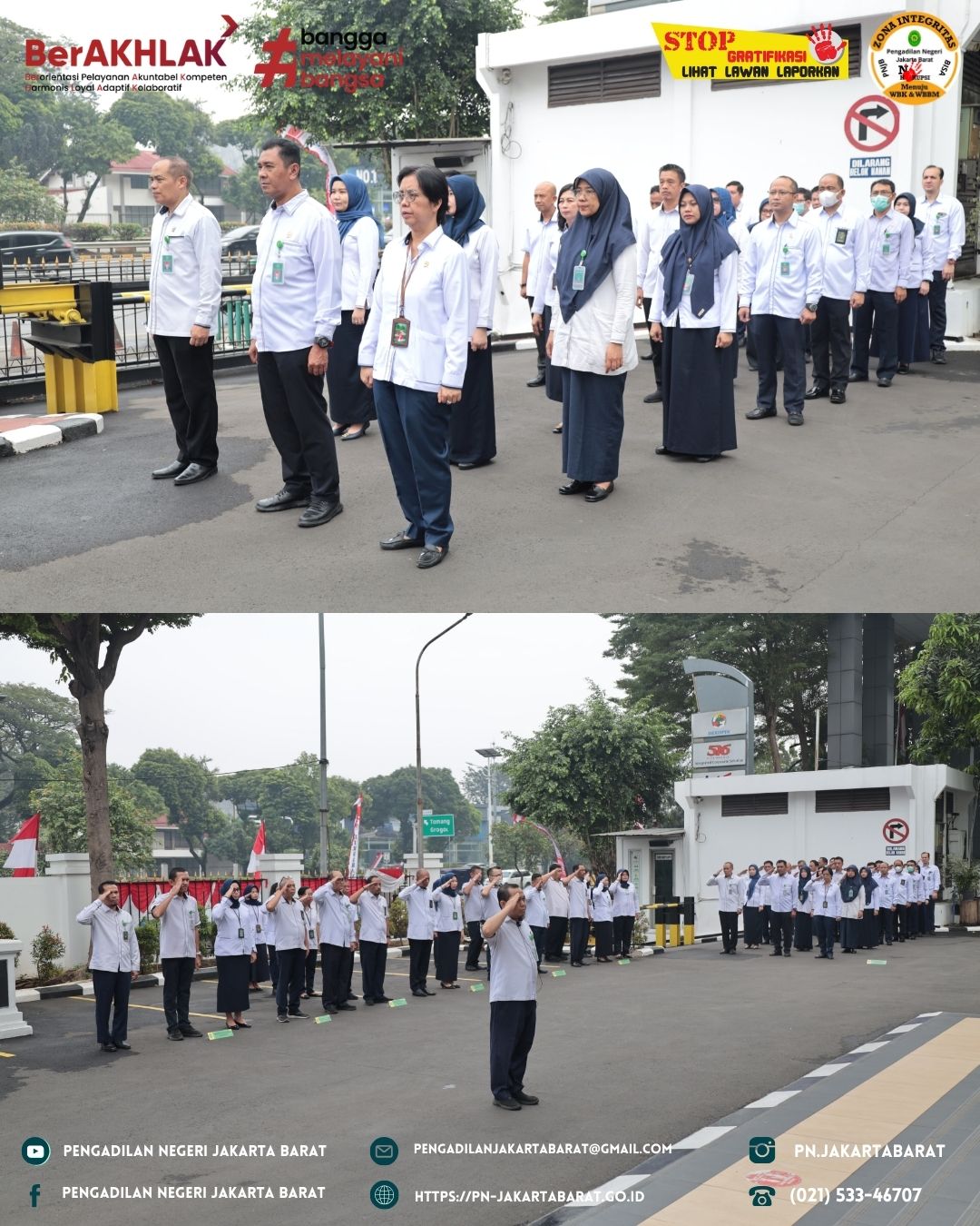 Hari ini mengawali kegiatan di Pengadilan Negeri Jakarta Barat Kelas IA Khusus, dibuka dengan Apel Senin Pagi yang dihadiri oleh seluruh pegawai lembaga pengadilan.