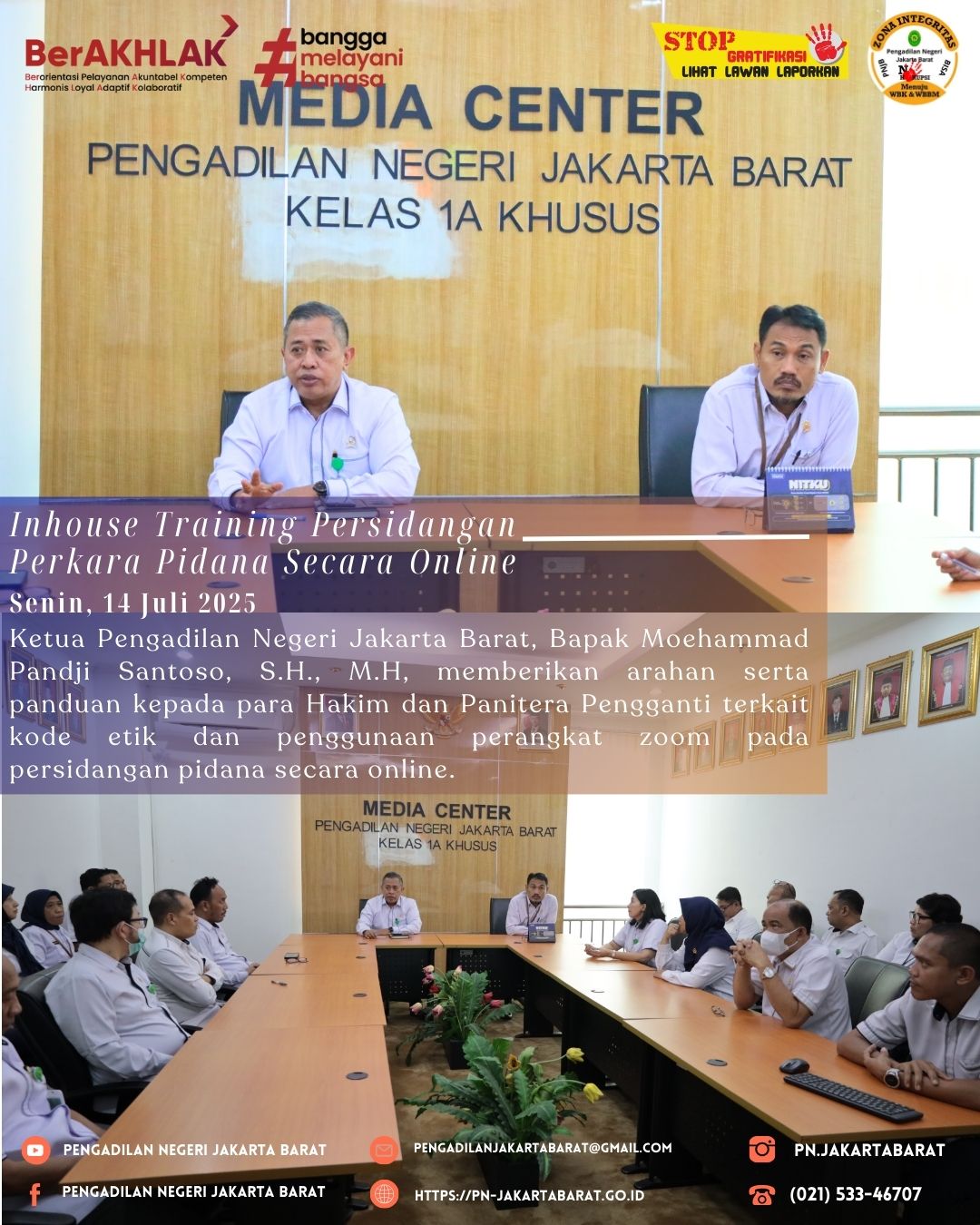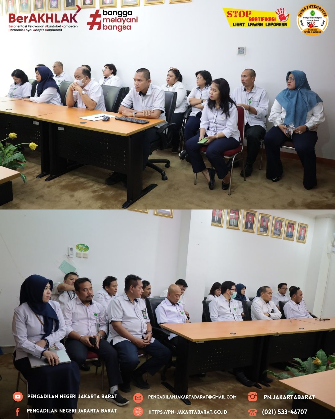 Ketua Pengadilan Negeri Jakarta Barat, Bapak Moehammad Pandji Santoso, S.H., M.H, memberikan arahan serta panduan kepada para Hakim dan Panitera Pengganti terkait kode etik dan penggunaan perangkat zoom pada persidangan pidana secara online.