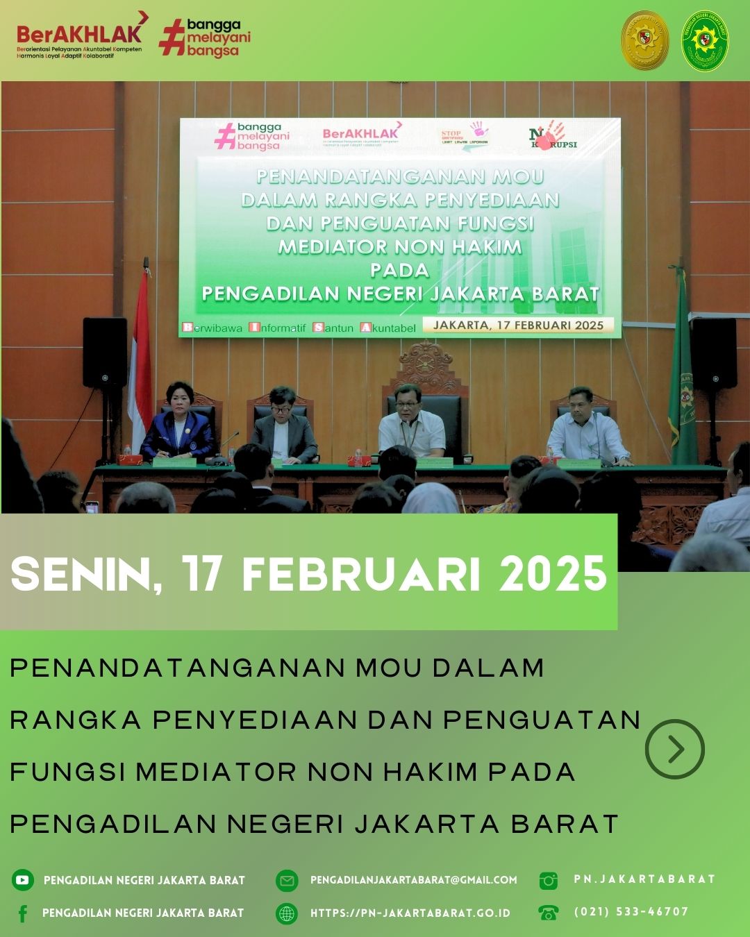 Penandatanganan MoU Mediator Non Hakim Pengadilan Negeri Jakarta Barat Tahun 2025