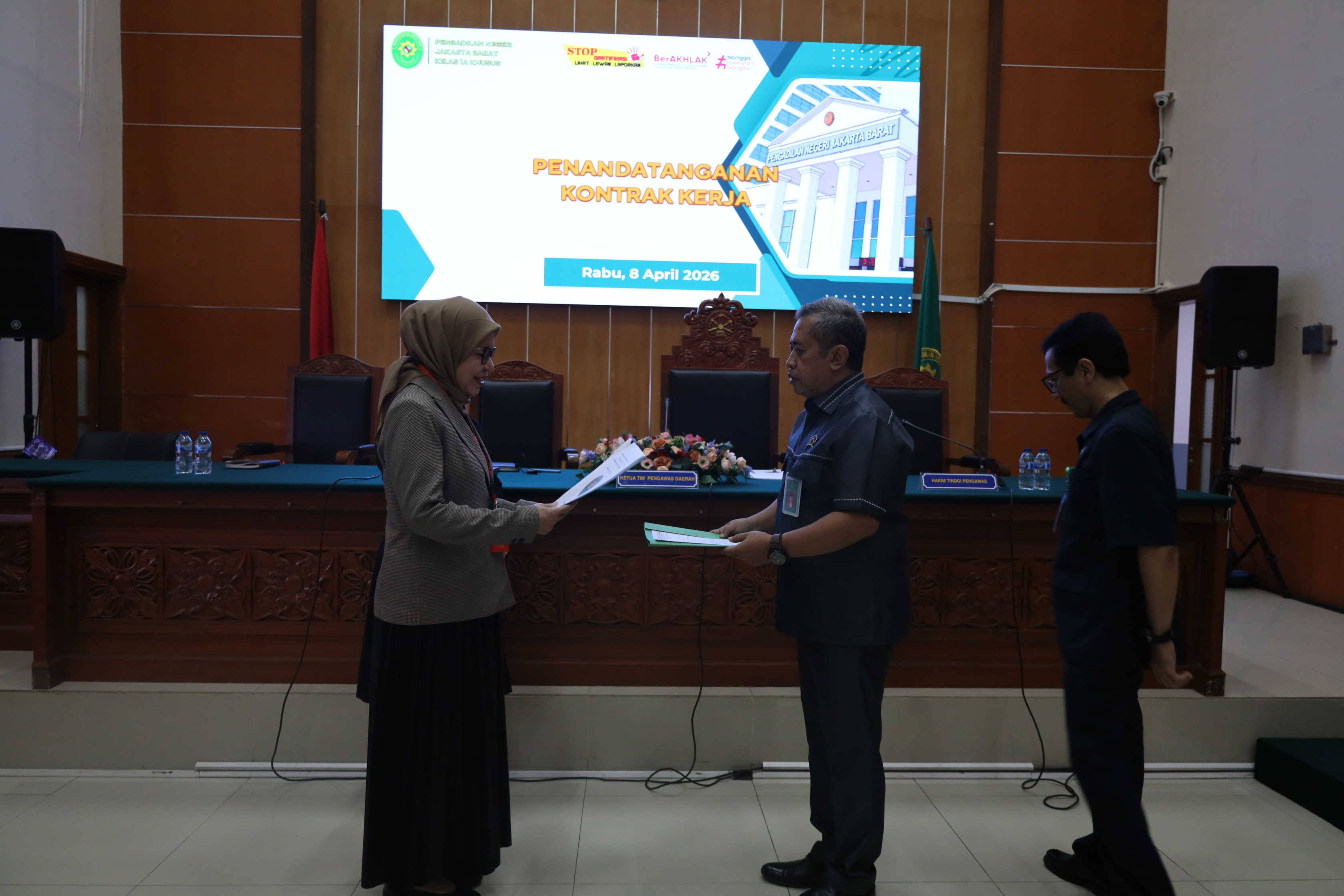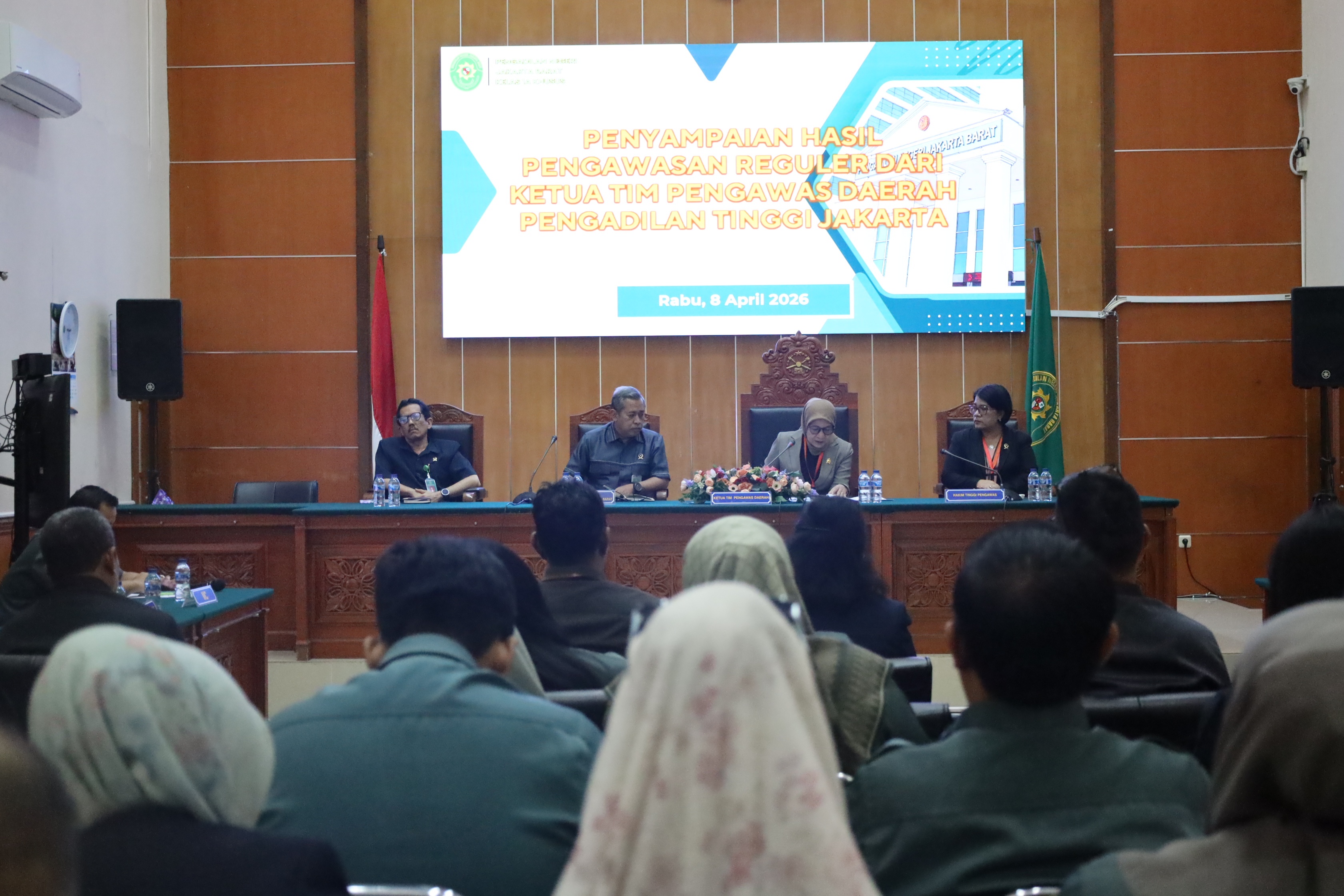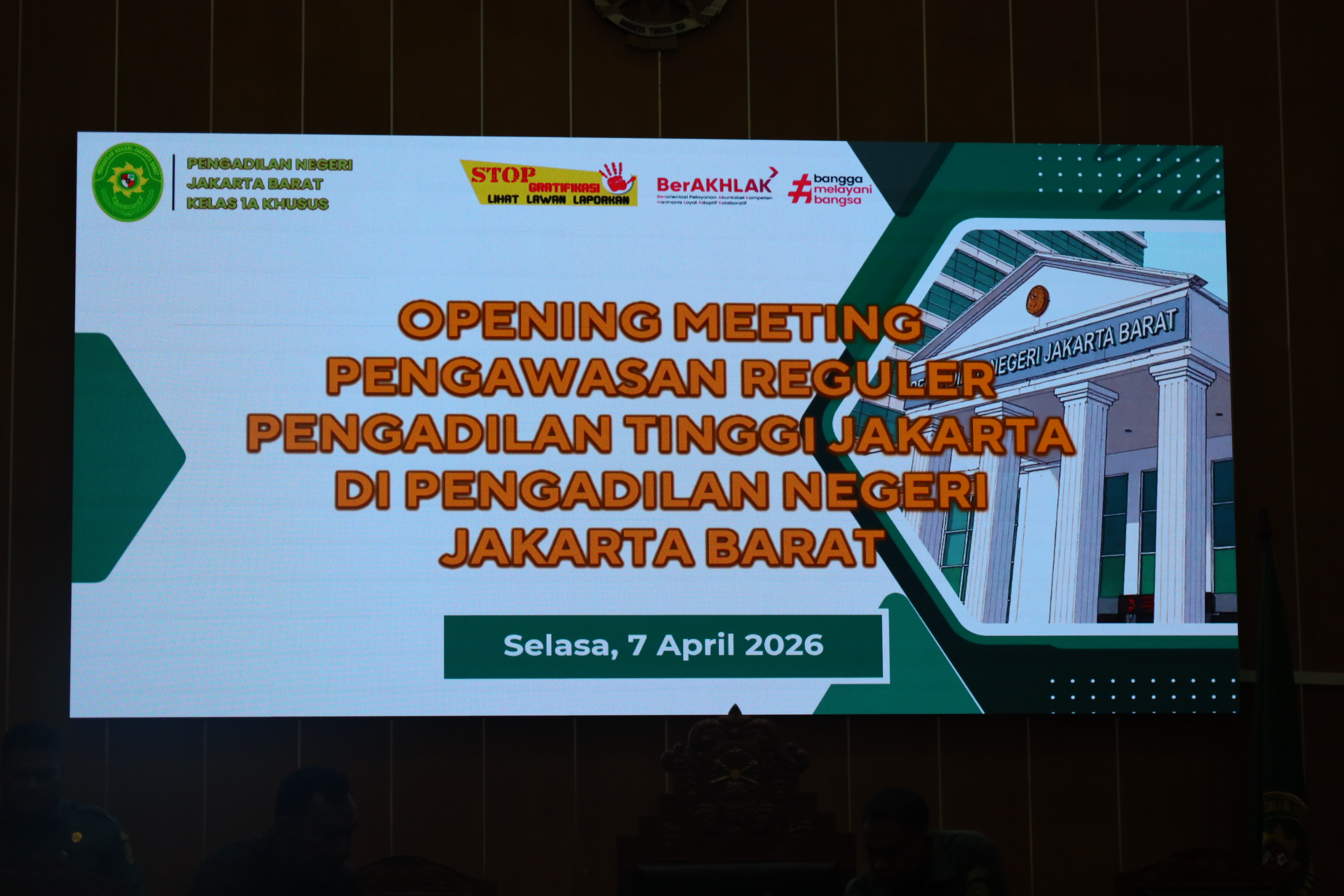 Jakarta - 8 April 2026, Bertempat di Ruang Sidang Utama Kusumah Atmadja Pengadilan Negeri Jakarta Barat Kelas IA Khusus, dilaksanakan Opening dan Closing Meeting Pengawasan Rutin/Reguler pada Pengadilan Negeri Jakarta Barat yang dilakukan selama 2 (dua) hari senin s.d selasa 07 s.d 08 April 2026 yang dipimpin oleh Ketua Tim Pengawasan ibu Istiningsih Rahayu, S.H., M.Hum didamping oleh Anggota dan Sekretaris Tim Pengadilan Tinggi Jakarta.