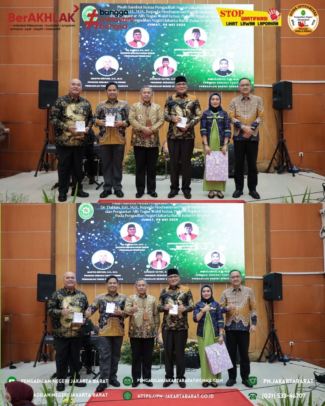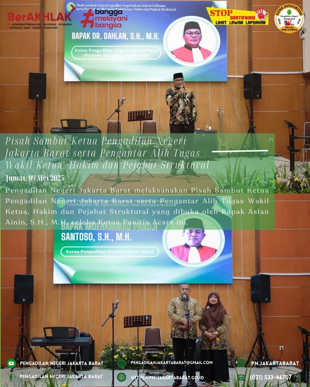 *PNJB, 09 Mei 2025* - Pengadilan Negeri Jakarta Barat melaksanakan Pisah Sambut Ketua Pengadilan Negeri Jakarta Barat serta Pengantar Alih Tugas Wakil Ketua, Hakim dan Pejabat Struktural yang dibuka oleh Bapak Aslan Ainin, S.H., M.H. selaku Ketua Panitia Acara ini.