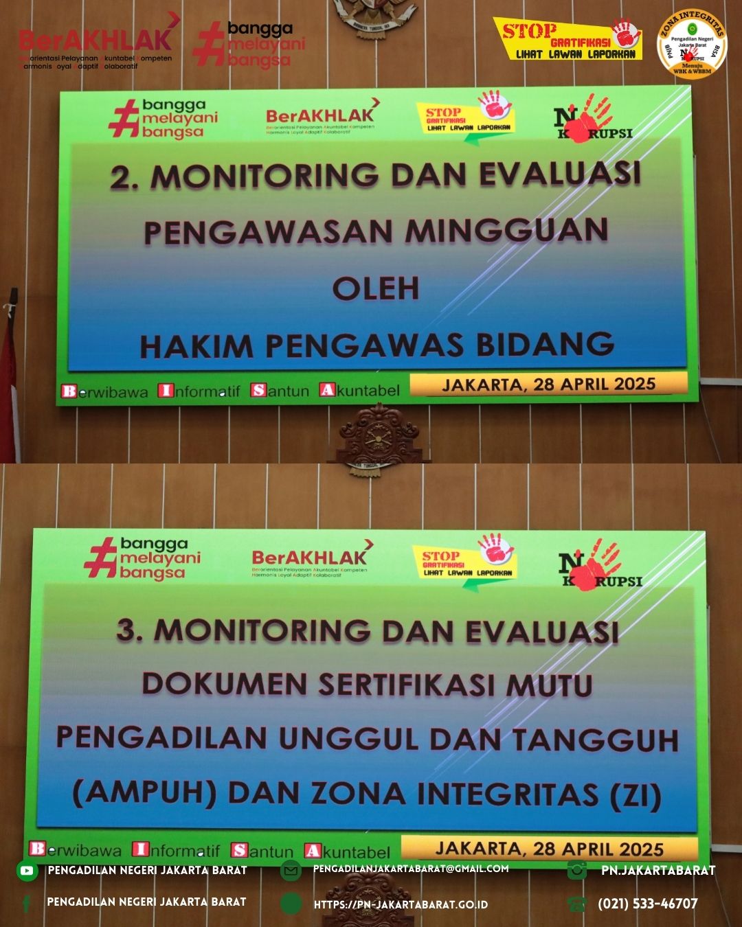6. Penyampaian Hasil Laporan Hakim Pengawas Bidang bulan April 2025 oleh Wakil Ketua Pengadilan Negeri Jakarta Barat Kelas IA Khusus.
