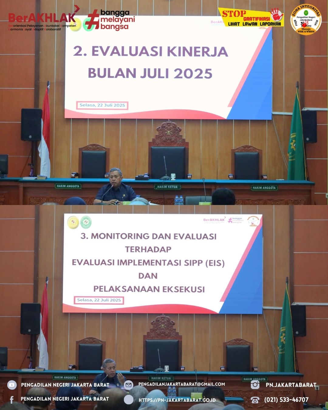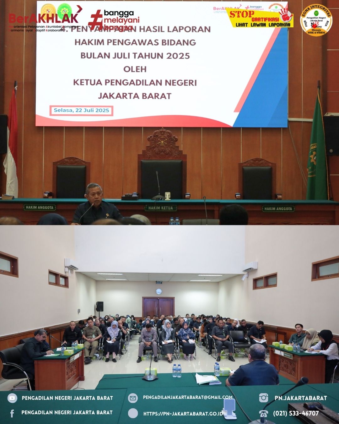 4. Penyampaian Hasil Laporan Hakim Pengawas Bidang bulan Juli tahun 2025 oleh Ketua Pengadilan Negeri Jakarta Barat Kelas IA Khusus