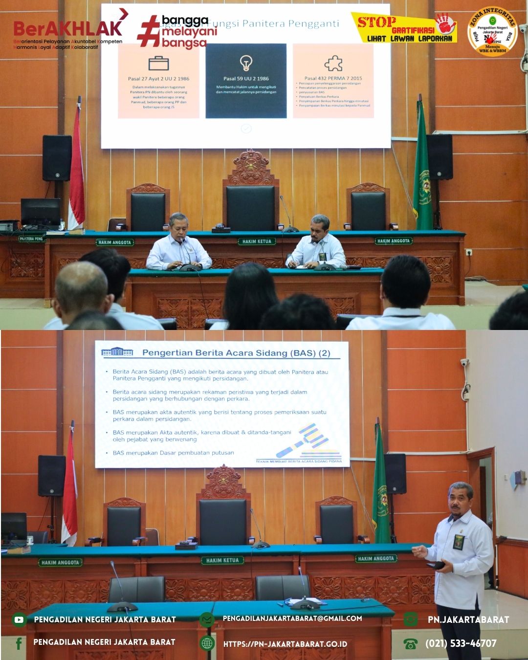 Rapat ini diadakan dengan tujuan mengoptimalkan kinerja Panitera Pengganti dalam membantu Hakim / Majelis Hakim dengan menghadiri dan mencatat jalannya sidang serta membuat berita acara tentang semua peristiwa hukum yang terdapat dalam persidangan perkara yang ditangani Hakim / Majelis Hakim tersebut.