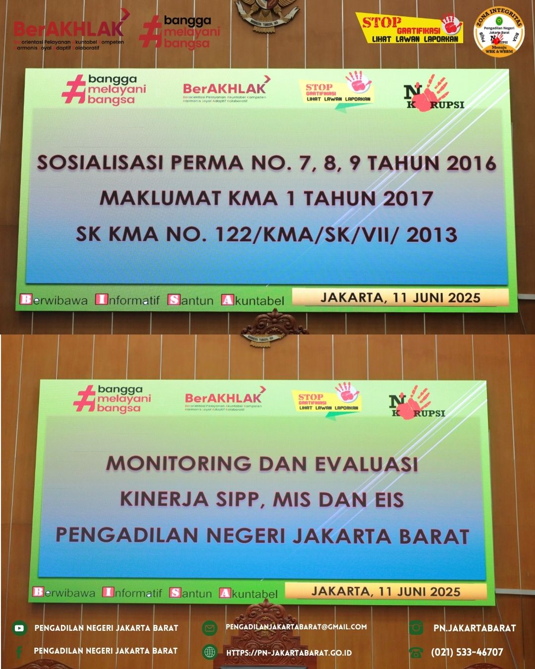 Dalam rapat ini, Panitera juga mensosialisasikan Perma Nomor 7, 8, 9 Tahun 2016, Maklumat KMA Nomor 1 Tahun 2017 dan SK KMA No 122/KMA/SK/VII/2013 agar diimplementasikan di Lingkungan Kerja Pengadilan Negeri Jakarta Barat.