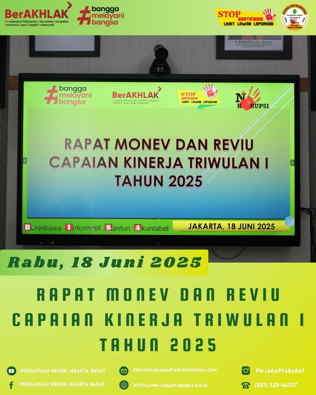 Rapat Monev dan Reviu dilakukan untuk melihat dan mengukur capaian kinerja Pengadilan Negeri Jakarta Barat berdasarkan perjanjian kinerja tahunan 2025.