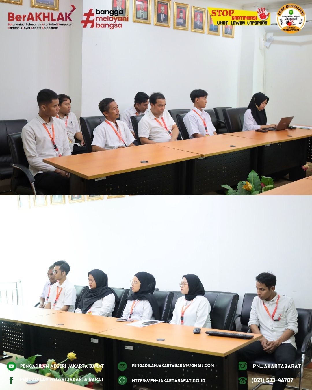 Dalam rapat ini membahas aturan yang telah ditetapkan bagi para staf yang magang di Pengadilan Negeri Jakarta Barat, mulai dari aturan berpakaian sampai tupoksi masing-masing bidang.