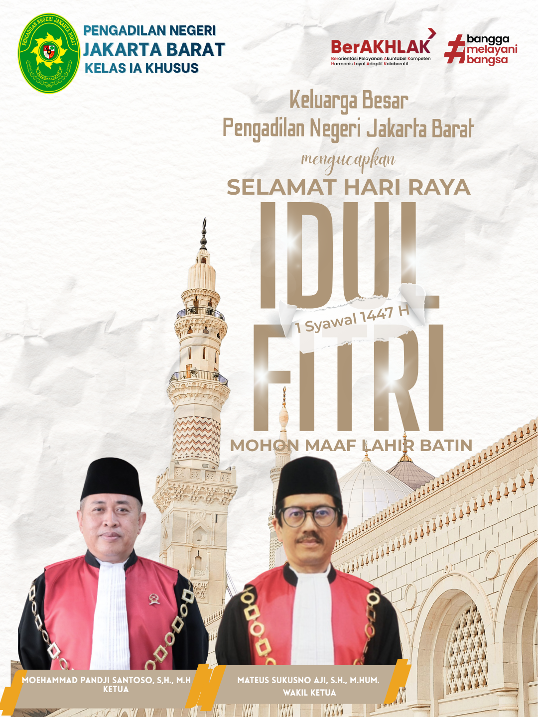 "Semoga di Hari yang Fitri ini, Kita Kembali pada Kesucian Hati, Mempererat Silaturahmi serta Meneguhkan Kepedulian terhadap Sesama"