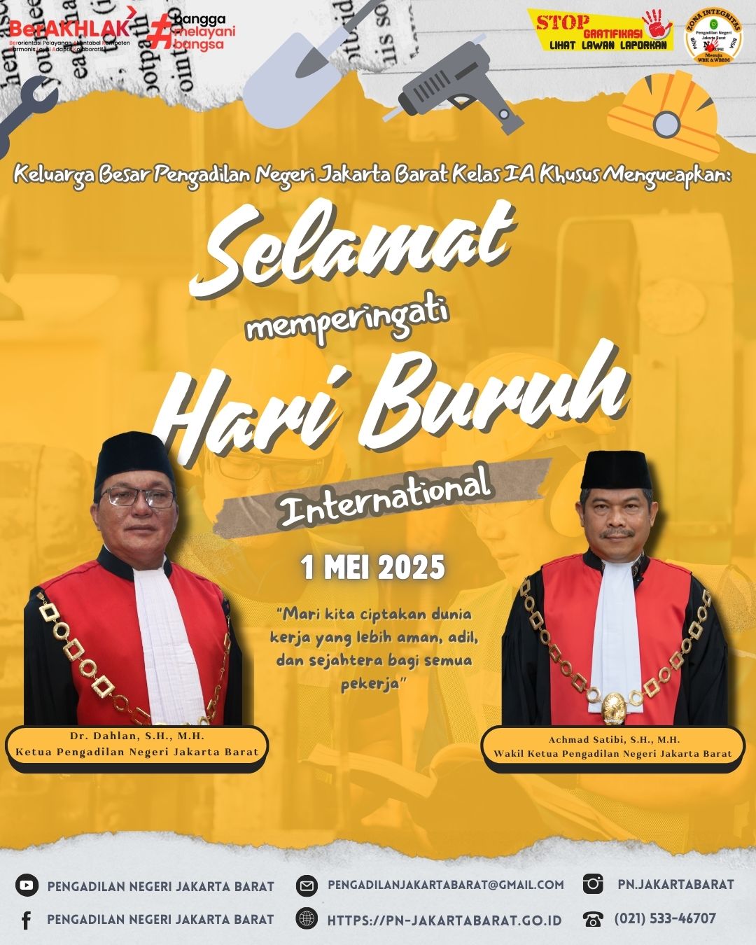 "Mari kita ciptakan dunia kerja yang lebih aman, adil, dan sejahtera bagi semua pekerja”