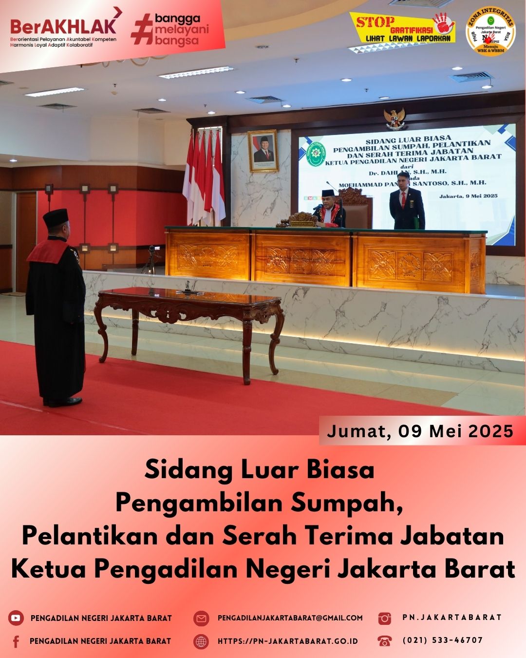 Sidang Luar Biasa Pengambilan Sumpah, Pelantikan dan Serah Terima Jabatan Ketua PN Jakarta Barat