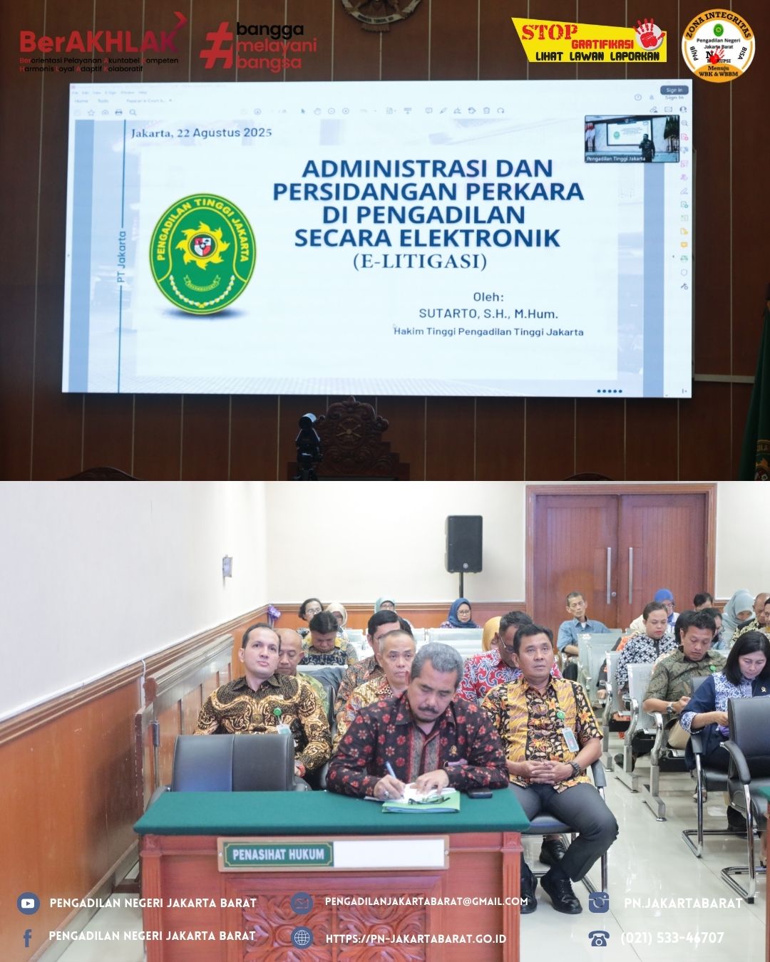 Lalu, Sosialisasi Persidangan Elektronik / E-LITIGASI sesuai PERMA 7 Tahun 2022 dan SK KMA 363/SK/KMA/XII/2022 tentang Petunjuk Teknis Administrasi Dan Persidangan Perkara Perdata, Perdata Agama Dan Tata Usaha Negara Di Pengadilan Secara Elektronik oleh Bapak Sutarto, S.H., M.Hum.