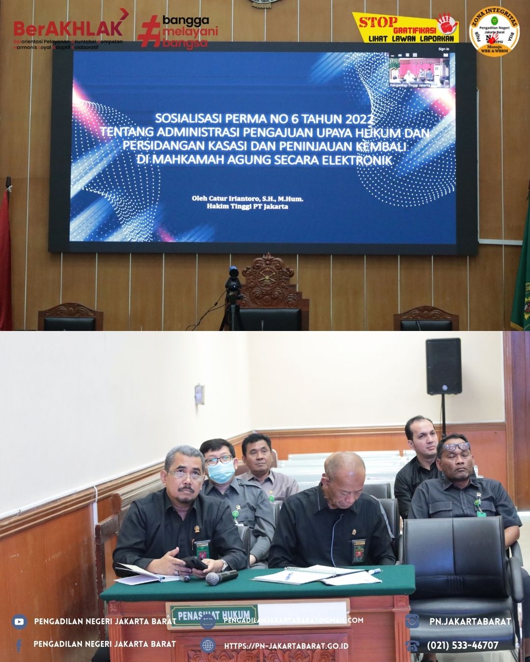 Sosialisasi Perma No. 6 Tahun 2022 tentang Administrasi Pengajuan Upaya Hukum dan Persidangan Kasasi dan Peninjauan Kembali di Mahkamah Agung Secara Elektronik oleh Bapak Dr. Catur Iriantoro, S.H., M.Hum., Hakim Tinggi Pengadilan Tinggi Jakarta.