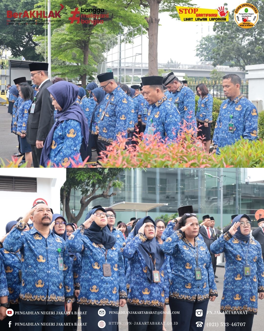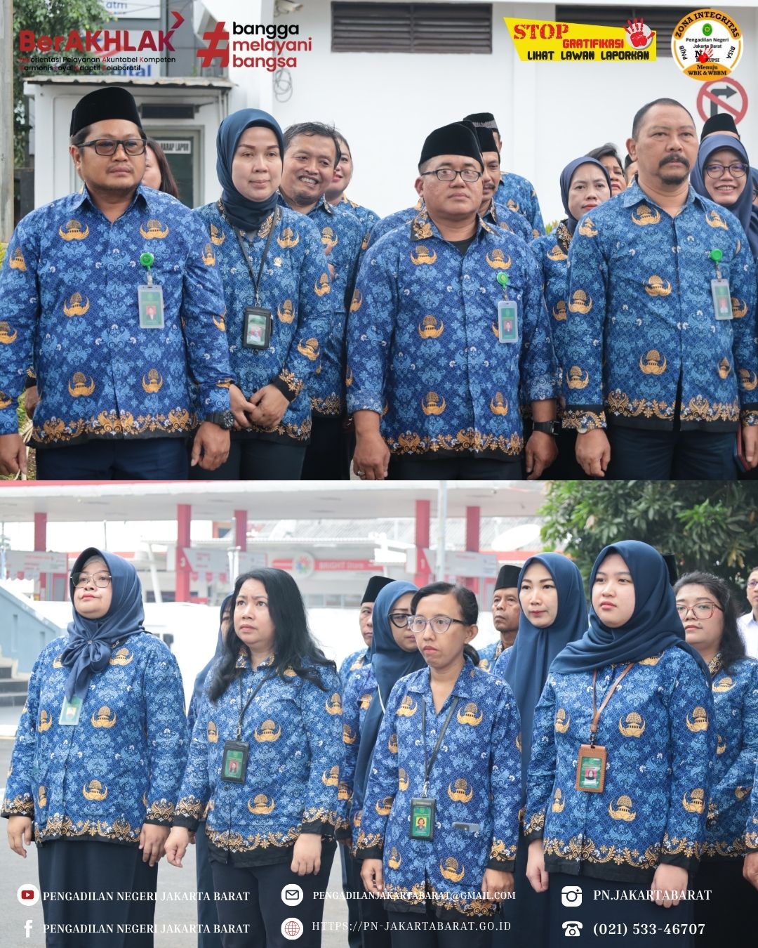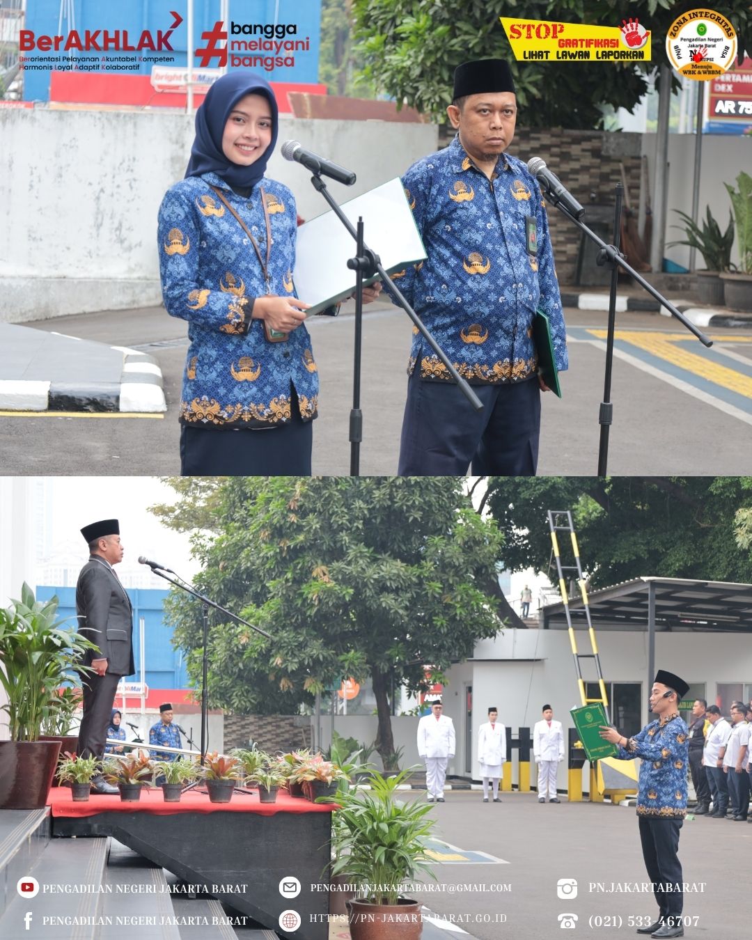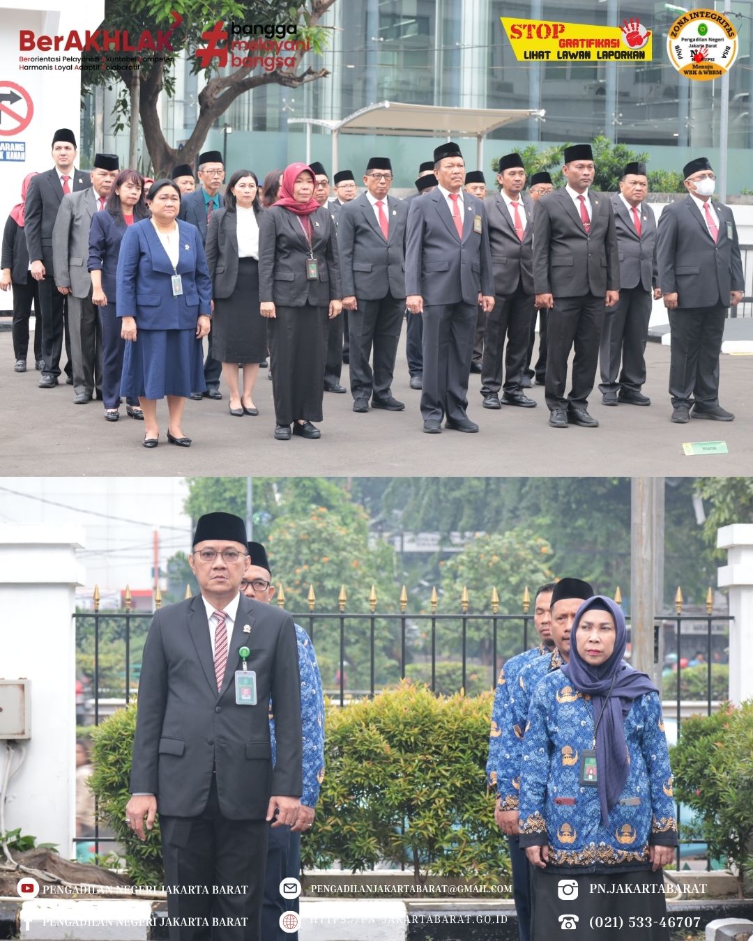 *PNJB, 02 Juni 2025* - Pengadilan Negeri Jakarta Barat Kelas IA Khusus melaksanakan Upacara Memperingati Hari Lahir Pancasila Tahun 2025. Upacara dipimpin oleh Ketua Pengadilan Negeri Jakarta Barat Kelas IA Khusus, Bapak Moehammad Pandji Santoso, S.H., M.H., sebagai Inspektur Upacara, selaku Perwira Upacara, Bapak Wasino, S.H., M.H., Ajudan, Bapak Tri Ana Juliva, Komandan Upacara, Bapak Andry Hidayat, Pemandu Acara (MC) Ibu Elfri Annisa Ivaramulya, S.Hum., Petugas pengibar bendera adalah, Bapak Indriansyah, S.H., Ibu Oktarina Permatasari, A.Md.A.B., Bapak Deden Kusdinar, S.H., Pembaca Pembukaan UUD 1945, Bapak Miftah Farid, A.Md., serta Pembaca Doa oleh Bapak Muchamad Irwan Arsyansyah, S.Sos.