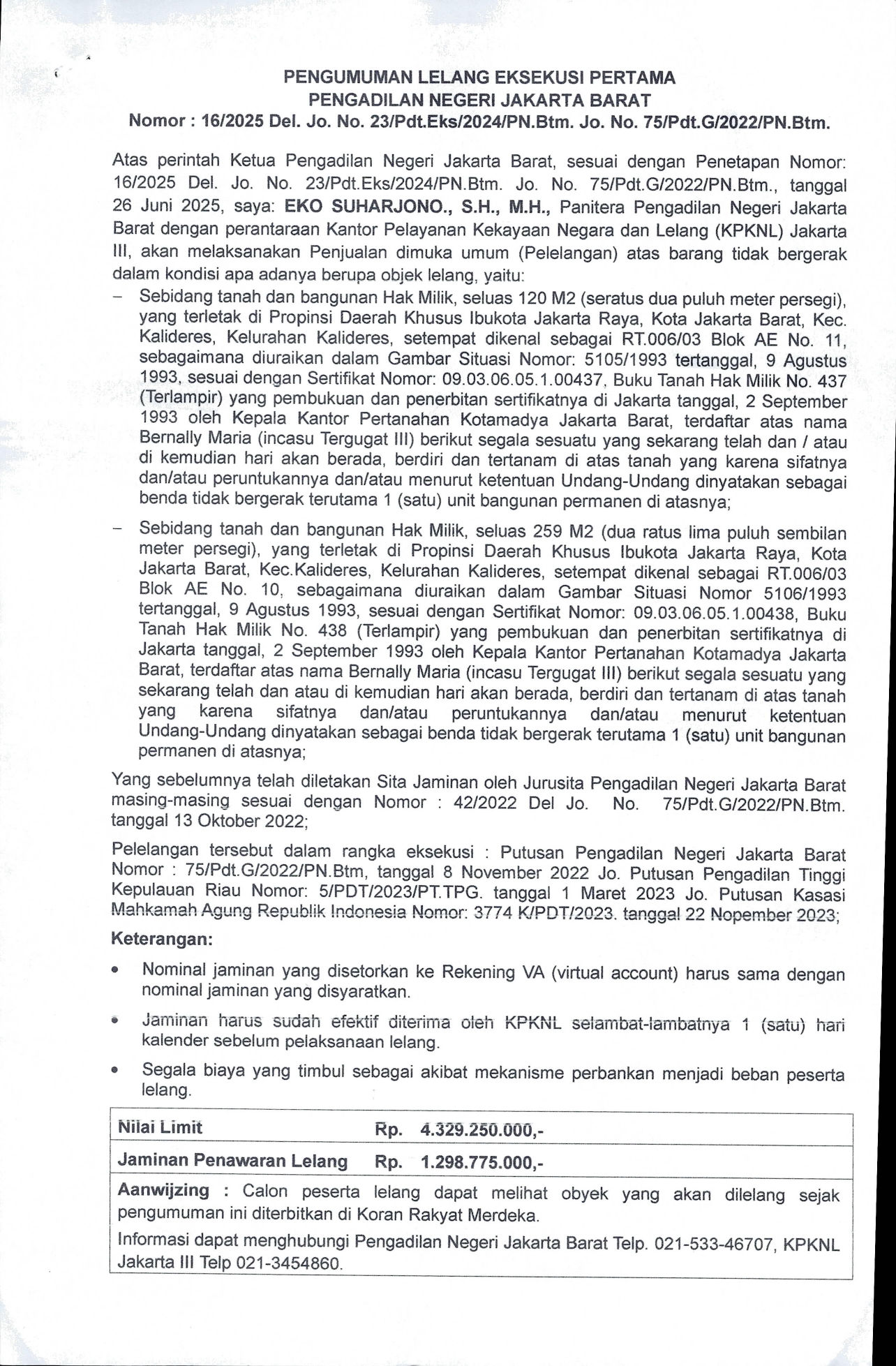 Telp. 021-53346707 Fax. 021-5322312 ✉ pengadilanjakartabarat@gmail.com